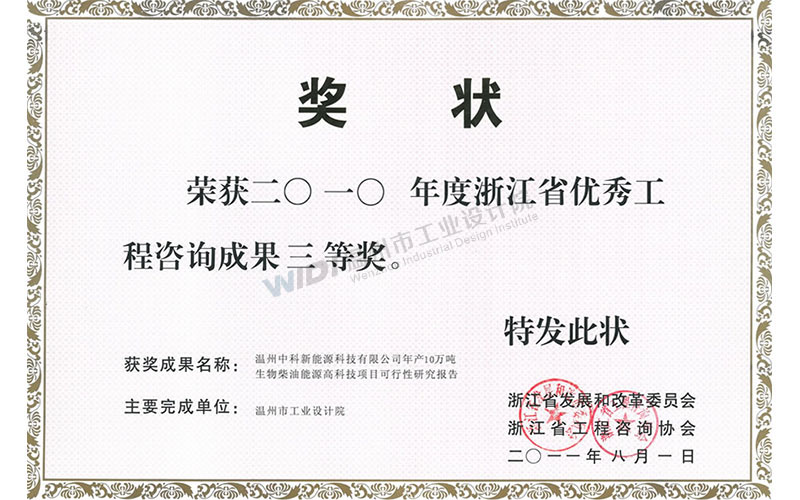 溫州中科新能源科技有限公司年產(chǎn)10萬(wàn)噸生物柴油能源高科技項(xiàng)目可行性研究報(bào)告 省優(yōu)秀咨詢成果三等獎(jiǎng)