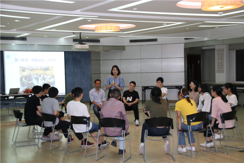 活動(dòng)在勵(lì)志歌曲“追夢(mèng)赤子心”的音樂(lè)聲中拉開(kāi)序幕。大家在指導(dǎo)老師的引領(lǐng)下,分成二個(gè)小組共同進(jìn)入“大風(fēng)吹”“請(qǐng)讓我為你按摩一下下”“優(yōu)點(diǎn)轟炸”“銜紙杯傳水”